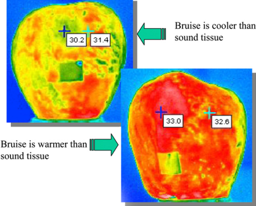 4.红外热像仪可以连续记录温度记录图,并且可以在传送带上进行估算,使用热成像通过测量干燥期间柑橘类水果的温度分布来模拟脱水动力学。这可用于确定最终干燥点,也可用于开发在线控制系统。红外热成像可以改善热量消耗和水果质量控制