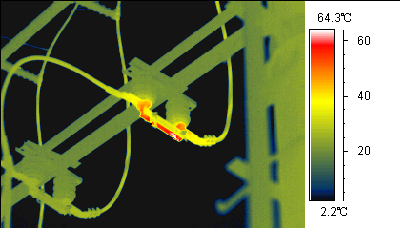 红外热像仪彩虹效果,看电线接头发热