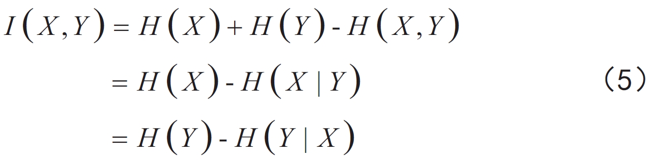 互信息是一种数学定义,用来评估随机变量之间的关联性。它表示两个随机变量中的共有信息。由信息熵描述的互信息表达式如下[12]: